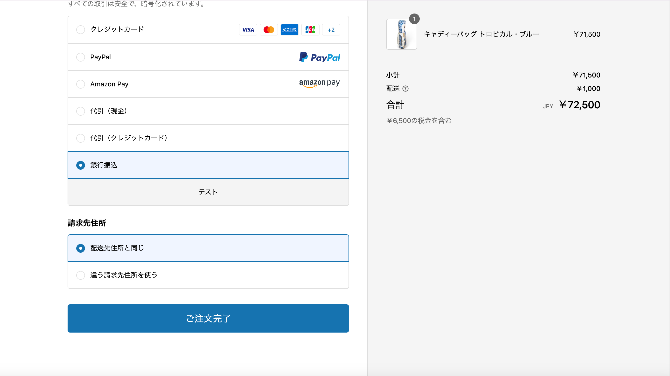 ※銀行振込を選択された場合は、入金確認後に発送となります。